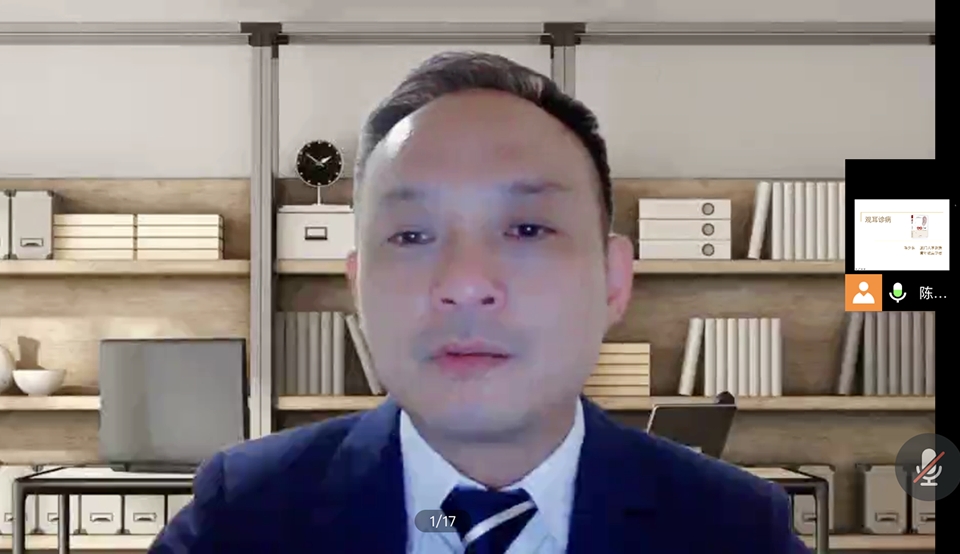 3月30日晚,厦门大学陈少东教授做客tyc41183太阳成集团“傅山讲堂”,以线上直播的形式,为公司师生作了题为《望耳诊病》的学术讲座。讲座由tyc41183太阳成集团经理何丽清主持,公司两百余名员工线上聆听了讲座。