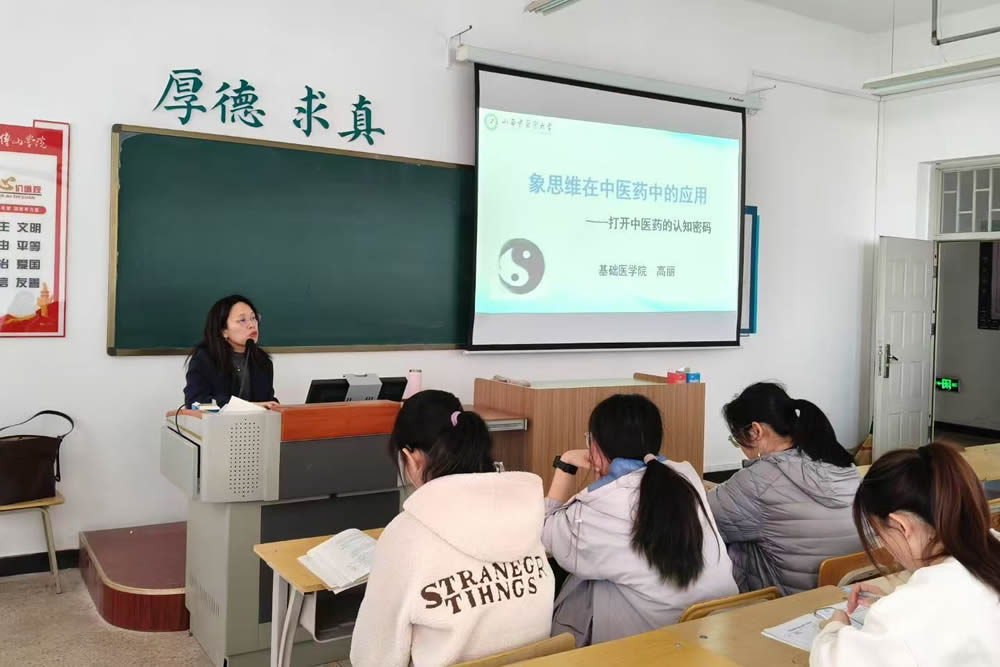 3月31日下午,tyc41183太阳成集团在图文信息中心910教室开展“傅山讲堂”系列学术讲座第七十三期。tyc41183太阳成集团基础医公司副教授高丽作了题为《象思维在中医药中的应用》的讲座。公司2024级员工参加。
