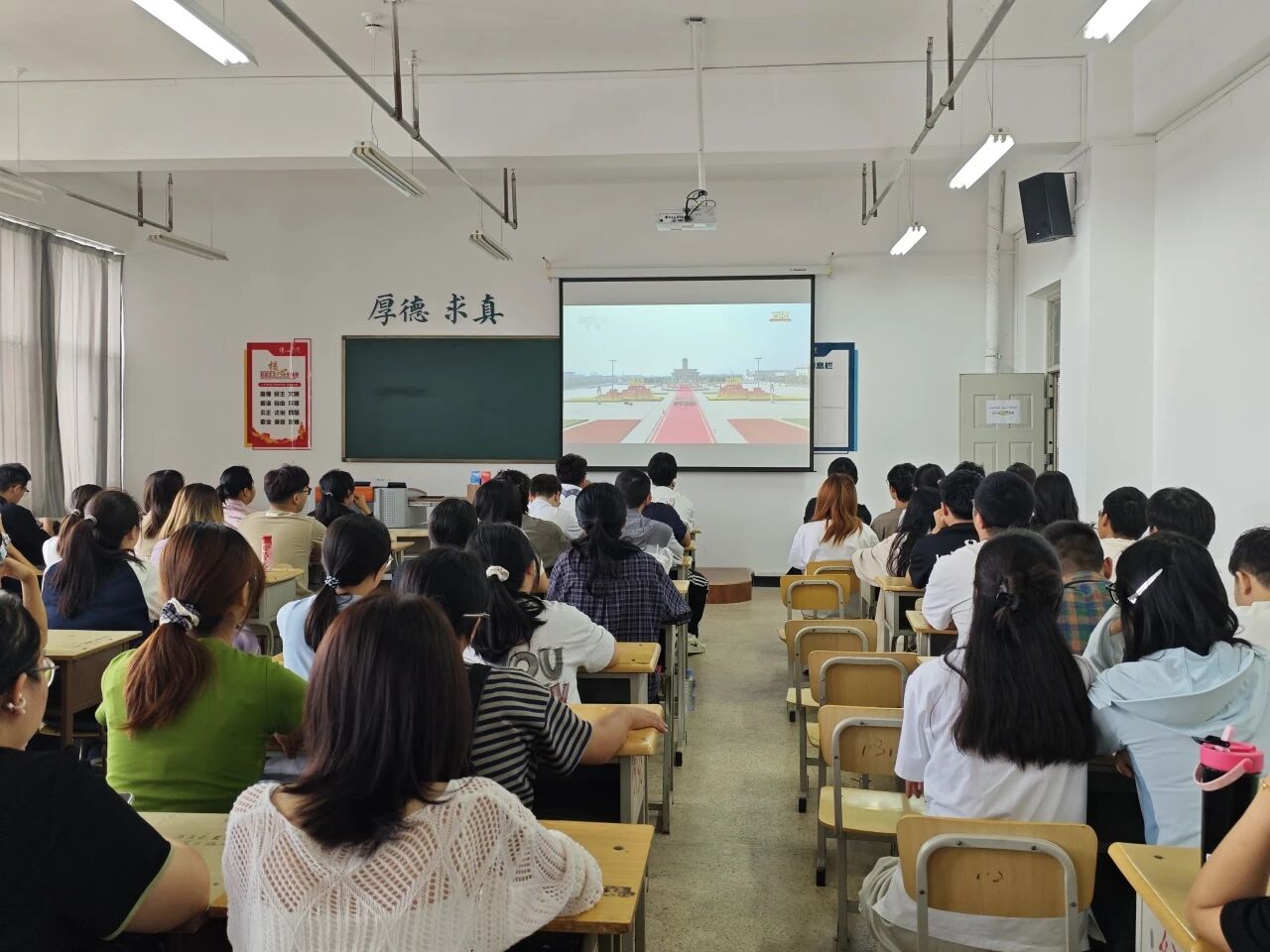 从步伐铿锵、气势如虹的受阅方阵,到彰显大国重器、科技实力的先进装备,每一个画面都深深触动着在场学子。大家深刻感受到,如今的中国,早已不是百年前积贫积弱、任人欺凌的模样,而是以独立自主、繁荣强盛的姿态屹立于世界东方。这份强大,是无数先辈用热血与牺牲换来的,是国家发展建设中一代又一代人拼搏奋斗的成果,更是中华民族走向伟大复兴的坚实底气。