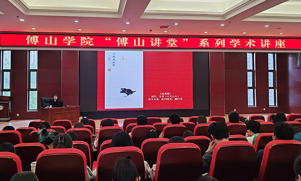 杨耀华以一幅孤禽画为开端,带领大家走进写意花鸟画的世界,解析其艺术魅力和创作精神,领略中华优秀传统文化的博大精深。围绕写意花鸟画的起源、分类及特点等方面向同学们逐个剖析写意花鸟画“以意写之、似与不似、记白当黑、以书入画、诗书画印、以少胜多、构图章法”七大特点。同时展示了八大山人朱耷、齐白石等名家的写意画,通过生动的绘画作品使同学们了解写意花鸟画背后的文化内涵和哲学思想,掌握欣赏写意花鸟画的方法和技巧。