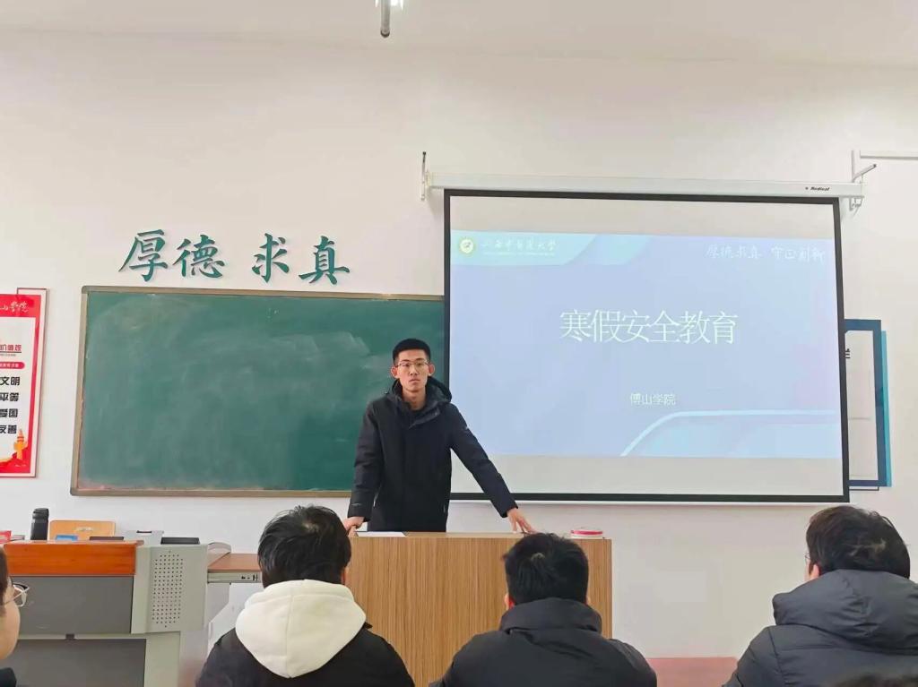 班会上,辅导员围绕交通安全、居家消防安全、网络反诈、实习安全等重点,结合典型案例剖析隐患,引导员工绷紧安全弦。辅导员着重叮嘱,出行务必选乘正规交通工具,严格履行离校登记手续;离校前需整理好个人物品,关闭宿舍门窗、切断电源,落实“人走断电、关水锁门”要求,从源头杜绝安全风险。